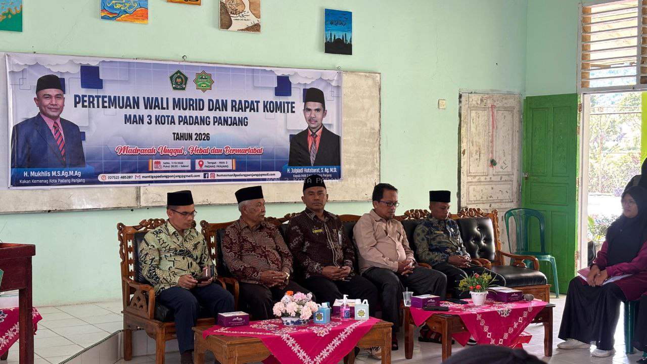 Padang, Sabtu (11/10/2025) — MAN 3 Kota Padang Panjang melaksanakan kegiatan Pertemuan Orang Tua Murid dan Rapat Komite yang dibuka secara resmi oleh Kepala Kantor Kementerian Agama Kota Padang Panjang. Kegiatan ini bertujuan mempererat sinergi antara pihak madrasah, orang tua, dan komite dalam mendukung peningkatan mutu pendidikan dan pembinaan karakter peserta didik.